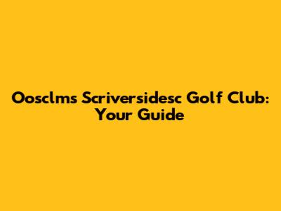 Oosclms Scriversidesc Golf Club: Your Guide