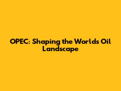 OPEC: Shaping The World's Oil Landscape