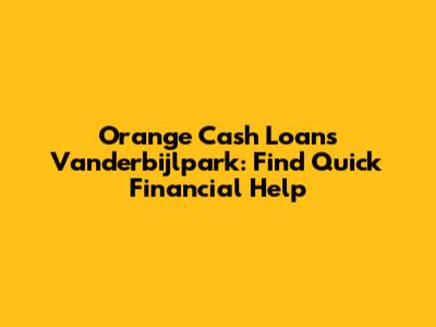 Orange Cash Loans Vanderbijlpark: Find Quick Financial Help