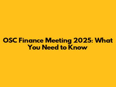 OSC Finance Meeting 2025: What You Need To Know