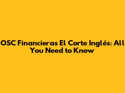 OSC Financieras El Corte Inglés: All You Need To Know