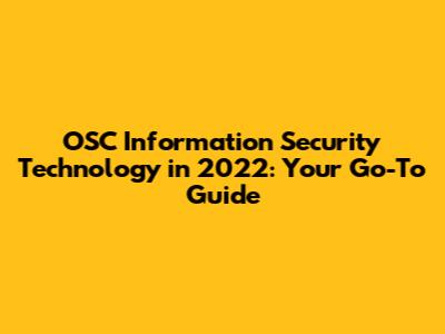 OSC Information Security Tech In 2022: Your Go-To Guide
