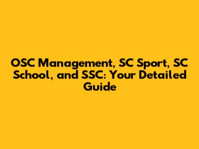 OSC Management, SC Sport, SC School And SSC: A Comprehensive Guide