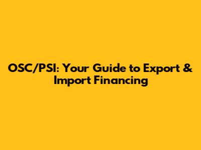 OSC/PSI: Your Guide To Export & Import Financing