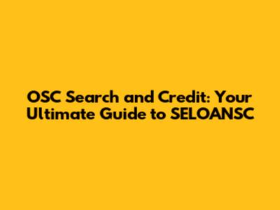 OSC Search And Credit: Your Guide To SELOANSC