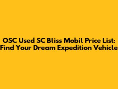 OSC Used SC Bliss Mobil Price: Find Your Dream Expedition Vehicle