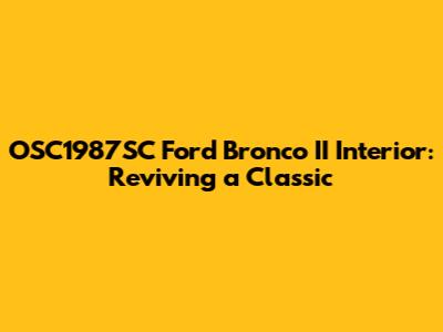 Hey there, gearheads! Are you a proud owner of an OSC1987SC Ford Bronco II? If so, you're in good company! These little SUVs have a special place in the hearts of many, and what makes them even more awesome is that you can personalize them to your liking. Today, we're diving deep into the interior of these classic Broncos, discussing everything from restoration projects to cool upgrades that'll make your ride the envy of everyone. Let's get started, shall we?