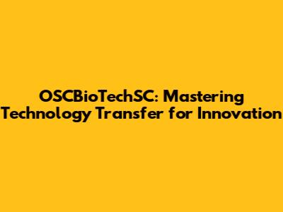 OSCBioTechSC: Mastering Tech Transfer For Innovation