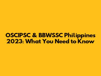 OSCIPSC & BBWSSC Philippines 2023: What You Need To Know