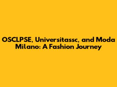 OSCLPSE, Universitassc, And Moda Milano: A Fashion Journey