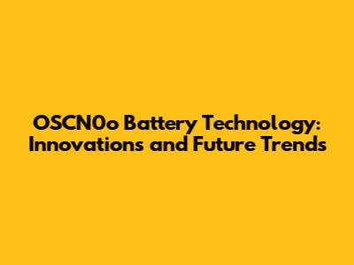 OSCN0o Battery Technology: Innovations And Future Trends