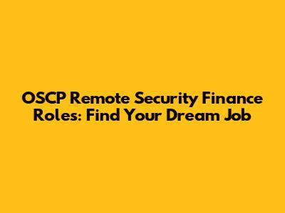 OSCP Remote Security Finance Roles: Find Your Dream Job