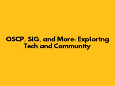 OSCP, SIG, And More: Exploring Tech And Community