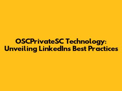 OSCPrivateSC Technology: Unveiling LinkedIn's Best Practices