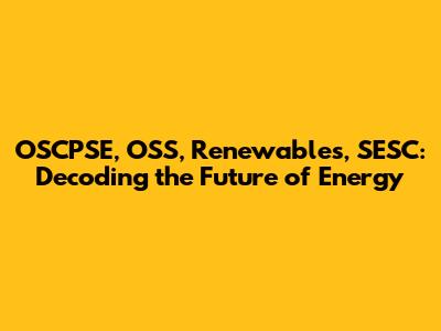 OSCPSE, OSS, Renewables, SESC: Energy Solutions Explained