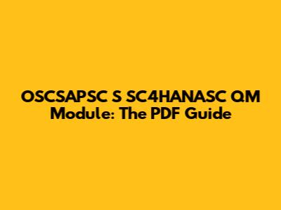 OSCSAPSC S SC4HANASC QM Module: The PDF Guide
