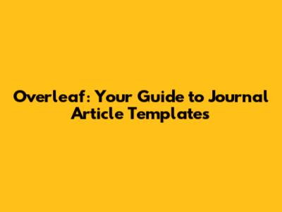 Overleaf: Your Guide To Journal Article Templates