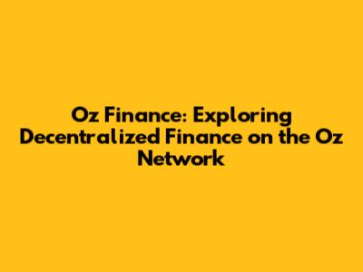 Oz Finance: Exploring Decentralized Finance On The Oz Network