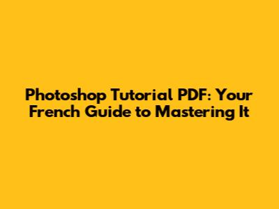 Photoshop Tutorial PDF: Your French Guide To Mastering It