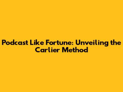 Podcast Like Fortune: Unveiling The Carlier Method