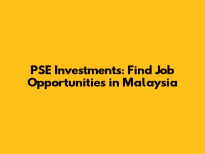 PSE Investments: Find Job Opportunities In Malaysia