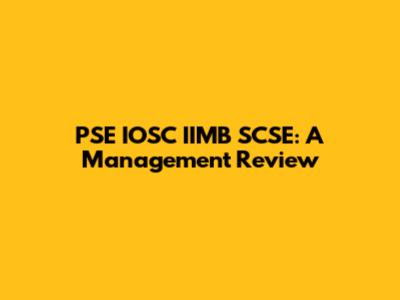 PSE IOSC IIMB SCSE: A Management Review