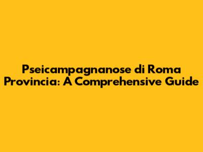 Pseicampagnanose Di Roma Provincia: A Comprehensive Guide