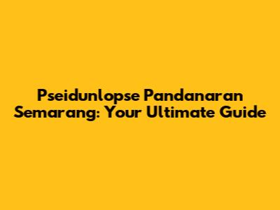Pseidunlopse Pandanaran Semarang: Your Ultimate Guide