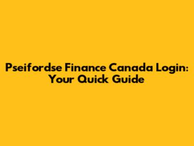 Pseifordse Finance Canada Login: Your Quick Guide