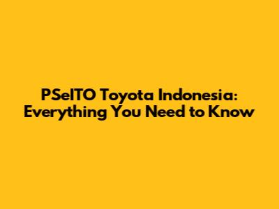 PSeITO Toyota Indonesia: Everything You Need To Know