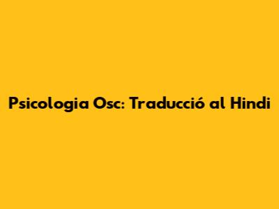 Psicologia Osc: Traducció Al Hindi