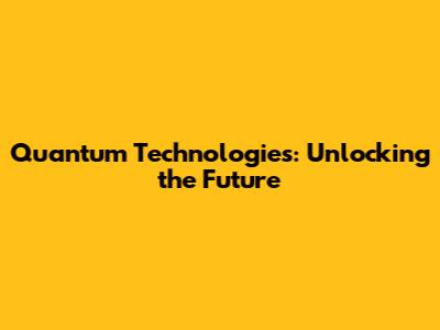 Quantum Technologies: Unlocking The Future
