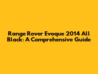 Range Rover Evoque 2014 All Black: Ultimate Guide