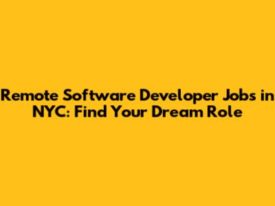 Remote Software Developer Jobs In NYC: Find Your Dream Role