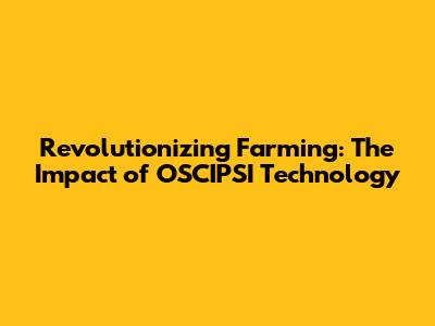 Revolutionizing Farming: The Impact Of OSCIPSI Technology