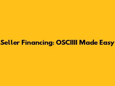 Why OSCIIII Matters in Seller Financing