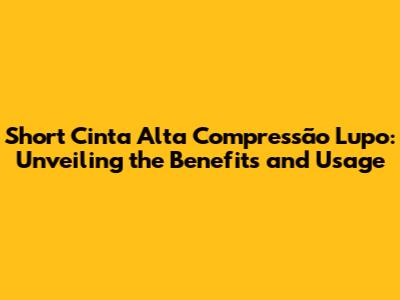 Short Cinta Alta Compressão Lupo: Your Guide To Benefits And Usage