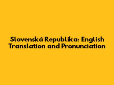 Slovenská Republika: English Translation And Pronunciation