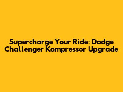 Supercharge Your Ride: Dodge Challenger Kompressor Upgrade