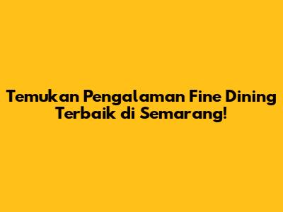 Semarang, kota yang kaya akan sejarah dan budaya, kini juga menawarkan pengalaman fine dining yang tak kalah menarik. Bagi kalian para pecinta kuliner yang ingin memanjakan lidah dengan hidangan lezat dan suasana yang elegan, Semarang memiliki sejumlah restoran fine dining yang wajib dicoba. Artikel ini akan memandu kalian untuk menemukan restoran-restoran terbaik di Semarang yang menawarkan pengalaman kuliner tak terlupakan. Mari kita mulai petualangan rasa yang akan memanjakan selera kalian!