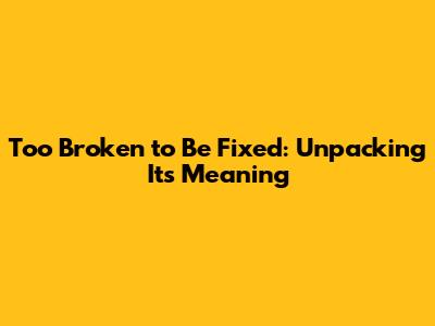 Too Broken To Be Fixed: Understanding Its Meaning