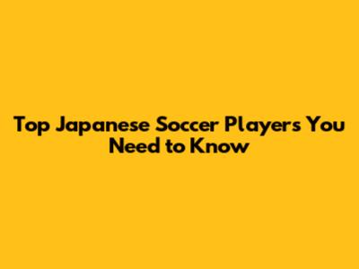 Top Japanese Soccer Players You Need To Know