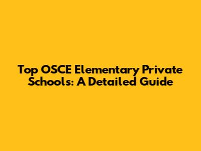 Top OSCE Elementary Private Schools: A Detailed Guide