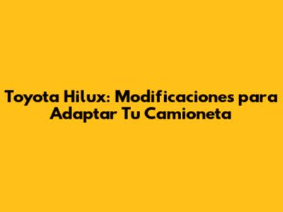 Toyota Hilux: Modificaciones Para Adaptar Tu Camioneta