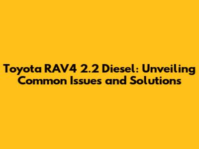 Hey guys! So, you're here because you're probably dealing with some head-scratching issues with your Toyota RAV4 2.2 diesel, right? Don't worry, you're definitely not alone. The RAV4 is a super popular SUV, but like any car, it has its quirks. In this article, we're diving deep into the common problems plaguing the Toyota RAV4 2.2 diesel, offering insights into what might be going wrong and, more importantly, how to fix it. We'll explore everything from engine woes to pesky electrical gremlins, equipping you with the knowledge to tackle these issues head-on. Whether you're a seasoned mechanic or just starting to get your hands dirty, this guide is designed to help you understand and troubleshoot your RAV4's issues. Let's get started, shall we?