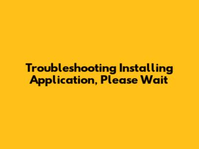 Troubleshooting 'Installing Application, Please Wait'