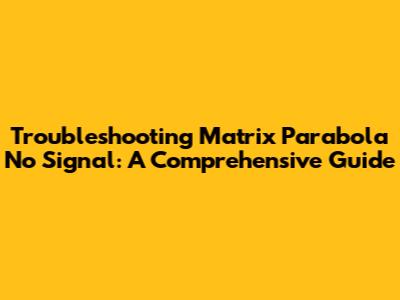 Troubleshooting Matrix Parabola No Signal: A Comprehensive Guide