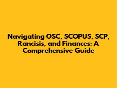 Alright, guys, let's dive into the fascinating world of OSC, SCOPUS, SCP, Rancisis, and, of course, the ever-important realm of finances. Understanding these terms and their implications can be super beneficial, whether you're a student, a researcher, or just someone keen on expanding your knowledge. So, grab a cup of coffee, and let’s get started!