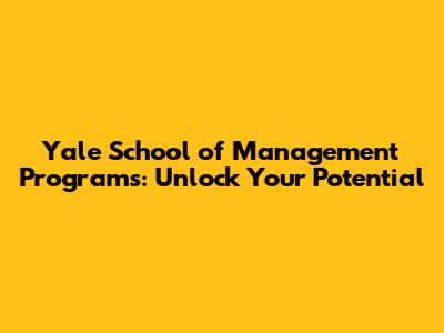 Unlock Your Potential: Yale School Of Management Programs