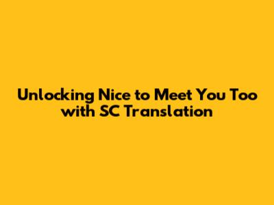 Unlocking 'Nice To Meet You Too' With SC Translation